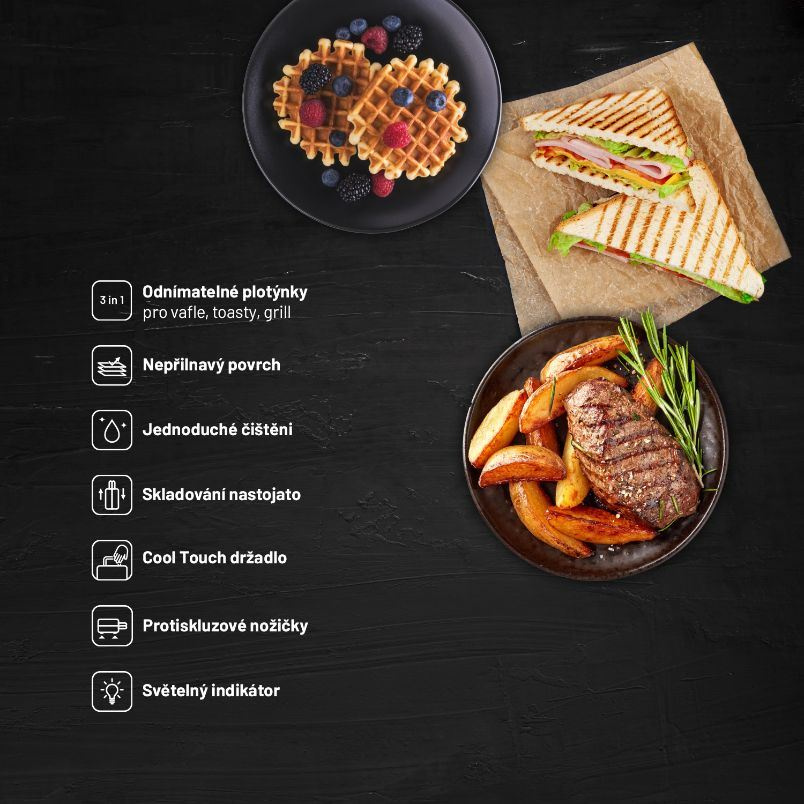 Toasty, vafle, panini i grilované maso nebo zelenina