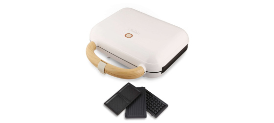 Lauben Sandwich Maker vás potěší i svým minimalistickým designem. Off white provedení s dřevěným dekorem se hodí téměř do každé kuchyně. Design sendvičovače je zároveň funkční. Držadlo je vyrobeno technologií Cool Touch, takže se o něj nikdy nespálíte a protiskluzové nožky zase zajistí, že během přípravy zůstane přístroj na svém místě.