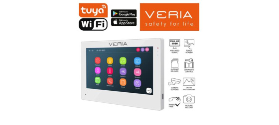 Barevný plně dotykový LCD monitor VERIA 3001-W je vybavený Wi-Fi připojením s komunikací do aplikace TUYA. K monitoru lze připojit další dvě externí AHD kamery a pohodlně tedy sledovat dění kolem domu. Propojení mezi monitorem a vstupní stanicí je 4-vodičové.