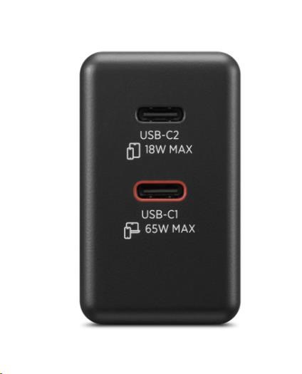 Nabíječka disponuje dvěma USB-C porty, takže umožňuje nabíjet dvě zařízení současně. Při použití obou portů se výkon inteligentně rozdělí na 45 W + 18 W, což je ideální kombinace například pro notebook a smartphone nebo tablet a bezdrátová sluchátka.