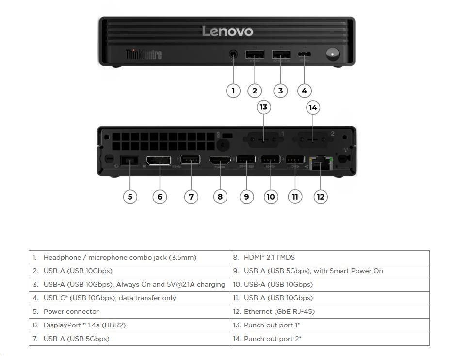 Provedení počítače:Mini-PC; Operační systém:Windows 11 Pro; Řada procesorů:Intel Core Ultra 5; Model procesoru:Intel Core Ultra 5 235T; Výkon CPU dle PassMark:32156; Počet jader:20; Maximální frekvence procesoru (GHz):5.4; Frekvence procesoru (GHz):2.1; TDP:65; Model grafické karty:Intel® Graphics; Velikost paměti RAM (GB):16; Typ disku:SSD. Lenovo Group Limited, Peking, 100 085, Čína, Kontakt podpory: https://pcsupport.lenovo.com/cz/cs/