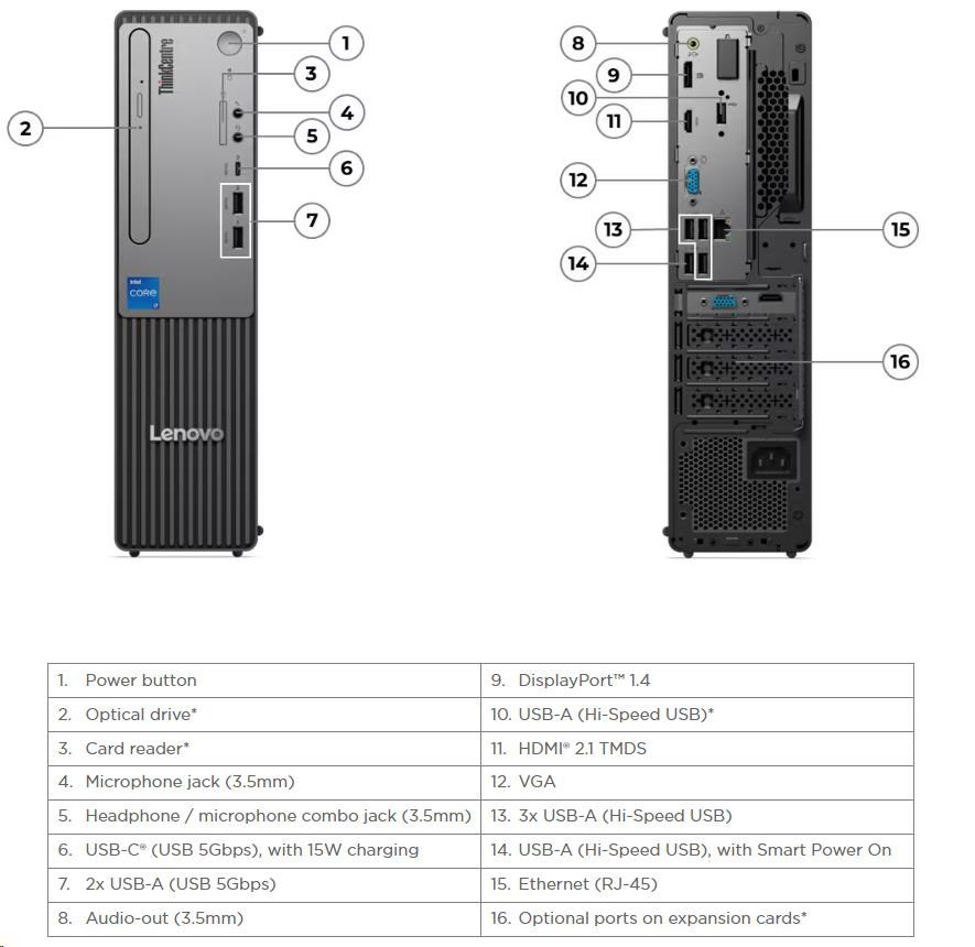 Provedení počítače:SFF (Small Form Factor); Operační systém:Windows 11 Pro; Řada procesorů:Intel Core i7; Model procesoru:Intel Core i7-14700; Výkon CPU dle PassMark:40752; Počet jader:6; Maximální frekvence procesoru (GHz):4.2; Frekvence procesoru (GHz):1.8; TDP:74; Model grafické karty:Intel UHD; Velikost paměti RAM (GB):16; Typ disku:SSD. Lenovo Group Limited, Peking, 100 085, Čína, Kontakt podpory: https://pcsupport.lenovo.com/cz/cs/