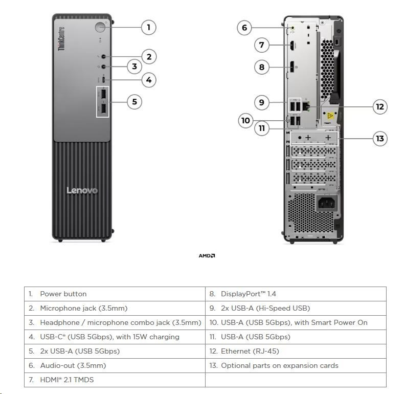 Provedení počítače:SFF (Small Form Factor); Operační systém:Windows 11 Pro; Řada procesorů:AMD Ryzen 7; Model procesoru:AMD Ryzen 7 250; Výkon CPU dle PassMark:25466; Počet jader:20; Maximální frekvence procesoru (GHz):5.4; Frekvence procesoru (GHz):2.1; TDP:65; Model grafické karty:AMD Radeon 780M; Velikost paměti RAM (GB):16; Typ disku:SSD. Lenovo Group Limited, Peking, 100 085, Čína, Kontakt podpory: https://pcsupport.lenovo.com/cz/cs/