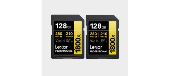 Popis Lexar SDXC Pro 1800x U3 UHS-II R280/W210 (V60) 128GB - 2pack