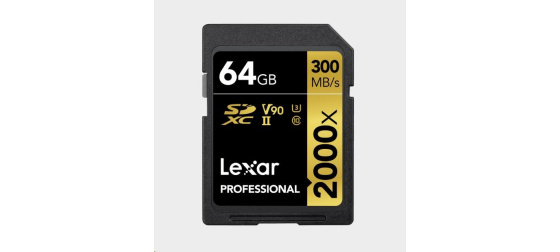 Popis Lexar SDXC Pro 2000X UHS-II U3 R300/W260 (V90) 64GB