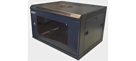 LEXI-Net 19" nástěnný rozvaděč 6U 600x450, nosnost 60 kg, skleněné dveře, rozložený, černý