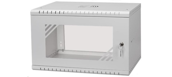 LEXI-Net 19" nástěnný rozvaděč Basic 6U 520x450, skleněné dveře, bez zad, rozložený, šedý