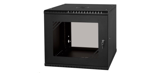 LEXI-Net 19" nástěnný rozvaděč Basic 9U 525x450, skleněné dveře, bez zad, rozložený, černý