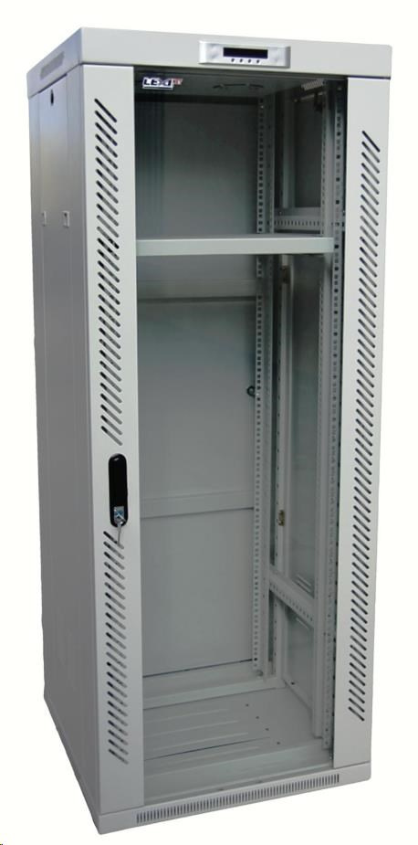 šířka 800mm, hloubka 800mm, nosnost 600 kg, skleněné dveře, složený (lze rozmontovat), šedý Obsahuje: