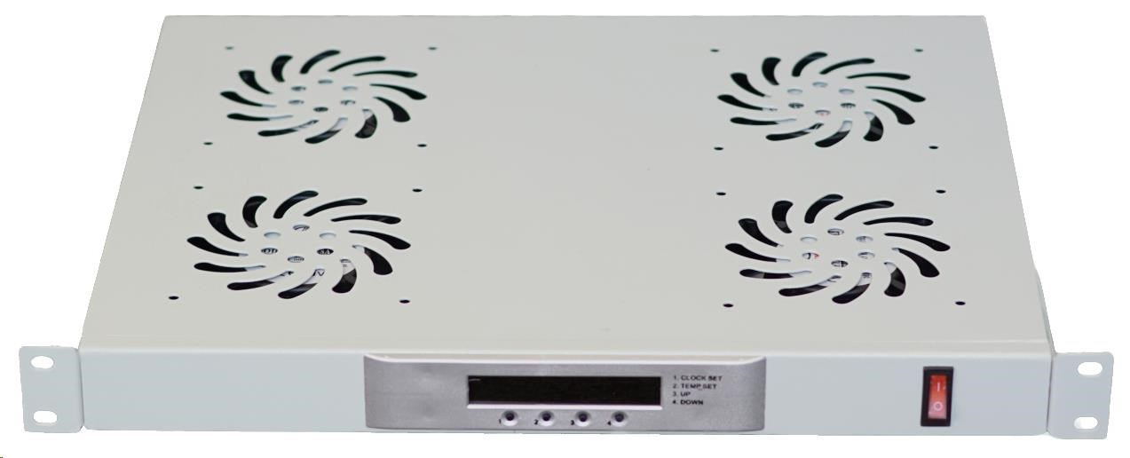 LEXI-Net 19" ventilační jednotka 1U, 4 ventilátory, LCD, digitální termostat, hloubka 350mm, šedá