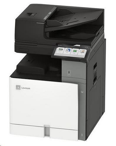 .Part Number 20L8300 Print Technology Color Laser Function Color Copying Color Faxing Color Printing Color Scanning Trusted Platform Module (TPM) The Trusted Platform Module (TPM) is not available in some countries. Workgroup Size Large Workgroup Touch Screen Display Yes Display Lexmark e-Task 10-inch (25 cm) class color touch screen Print Speed (Letter, Black) Up to 55 ppm4 Print Speed (Letter, Color) Up to 55 ppm4 Print Speed (Letter, Black) Duplex Up to 55 spm4 Print Speed (Letter, Color) Duplex Up to 55 spm4 Time to First Page (Black) As fast as 7.1 seconds Time to First Page (Color) As fast as 8.2 seconds Duplex (2-sided) Printing Integrated Duplex Print Resolution, Black 1200 x 1200 dpi 4800 Color Quality Print Resolution, Color 1200 x 1200 dpi 4800 Color Quality Copy Speed (Letter, Black) Up to 55 cpm4 Copy Speed (Letter, Color) Up to 55 cpm4 Copy Speed (Letter, Black) Duplex Up to 55 spm4 Copy Speed (Letter, Color) Duplex Up to 55 spm4 Time to First Copy (Black) As fast as 8.5 seconds Time to First Copy (Color) As fast as 9.5 seconds Reduce / Enlarge Range 25 - 400 % A4/Ltr Simplex Scan Speed (Black) Up to 120/120 sides per minute A4/Ltr Simplex Scan Speed (Color) Up to 120/120 sides per minute A4/Ltr Duplex Scan Speed (Black) Up to 240/240 sides per minute A4/Ltr Duplex Scan Speed (Color) Up to 240/240 sides per minute Scan Area, Maximum 11.69 x 17.0 inches ADF Scan DADF (single pass Duplex) Scanner Type Flatbed scanner with automatic document feeder Scan Resolution, Enhanced 600 x 600 dpi Scan Resolution, Optical 300 x 300 dpi Optical Scanning Resolution 300 X 300 dpi Scan File Formats (Send as) JPEG, JPG PDF Secure PDF TIFF Archival PDF (A-1a, A-1b) Searchable PDF TXT RTF DOCX Scan Destinations e-mail FTP USB Flash drive USB or Network connected computer Processor Speed Quad Core, 1.2 GHz Memory, Standard 4 GB Memory, Maximum 4 GB Hard Disk Intelligent Storage Drive included; Magnetic Hard Disk available Apple Operating Systems Supported Support is provided through AirPrint and AirScan only Citrix MetaFrame Microsoft Windows Server 2012 R2 Datacenter Edition running Citrix XenApp 7.5, 6, 7, 8, 9, 11, 12, 13, 14, 15, 16 Microsoft Windows Server 2012 Datacenter Edition running Citrix XenApp 7.5, 6, 7, 8, 9, 11, 12, 13, 14, 15, 16 Microsoft Windows Server 2012 Foundation running Citrix XenApp 6.0, 6.5 Microsoft Windows Server 2012 Essentials running Citrix XenApp 6.0, 6.5 Microsoft Windows Server 2012 Standard running Citrix XenApp 6.0, 6.5 Linux Operating Systems Supported Ubuntu 20.04 Debian 10 SUSE Linux Enterprise Server 12 SP5 OpenSUSE 15.2 Debian 11 Ubuntu 22.04 Fedora 36 Fedora 37 SUSE Linux Enterprise Server 15 SP4 OpenSUSE 15.4 Red Hat Linux 8.7 Red Hat Linux 9.1 Microsoft Windows Operating Systems Supported Windows Vista Windows Vista x64 Windows Server 2008 Windows Server 2008 x64 Windows Server 2008 running Terminal Services Windows Server 2008 x64 running Terminal Services Windows 7 Windows 7 x64 Windows Server 2008 R2 Windows Server 2008 R2 running Terminal Services Windows 8 Windows 8 x64 Windows Server 2012 Windows 8.1 Windows Server 2012 R2 Windows 10 Windows Server 2016 Windows Server 2019 Windows Server 2022 Windows 11 Novell Operating Systems Supported Novell NetWare 6.5 Open Enterprise Server Novell Open Enterprise Server 2 (SP3) on SuSE Linux Enterprise Server 10 SP4 (x86 and x64) 3 Novell Open Enterprise Server 11 (SP3) on SuSE Linux Enterprise Server 11 SP4 (x86 and x64) Novell Open Enterprise Server 11 (SP3) on SuSE Linux Enterprise Server 12 SP1 (x86 and x64) Novell Open Enterprise Server 15 (SP1) on SuSE Linux Enterprise Server 11 SP4 (x86 and x64) Other Operating Systems Supported Virtually any platform supporting TCP/IP Included Paper Handling 550-Sheet Tray 150-Sheet Multipurpose Feeder 500-Sheet Output Bin Optional Paper Handling 550-Sheet Tray Offset Stacker 500-Sheet Staple Offset Finisher 2 x 550-Sheet Tray 2000-Sheet Tandem Tray Cabinet 1,500-Sheet High-Capacity Tray Paper Transport Unit Folding Paper Transport Unit 1,250-Sheet Staple Hole Punch Finisher 2,250-Sheet Booklet Staple Hole Punch Finisher Paper Input Capacity, Standard Up to 700 pages 20 lb or 75 gsm bond Paper Input Capacity, Maximum Up to 4750 pages 20 lb or 75 gsm bond Paper Output Capacity, Standard Up to 500 pages 20 lb or 75 gsm bond Paper Output Capacity, Maximum Up to 2650 pages 20 lb or 75 gsm bond Paper Weight Range Supported - Standard Tray (lb.) 16 - 80 lb. Paper Weight Range Supported - Multipurpose Feeder (lb.) 16 - 80 lb. A3 / 11 x 17 Yes ADF 300-Sheet Automatic Document Feeder ADF Paper Input Capacity Up to 300 pages 20 lb or 75 gsm bond ADF Paper Output Capacity Up to 300 pages 20 lb or 75 gsm bond Finishing Option Yes Finishing Functions Offset stacking Stapling Hole punching Number of Paper Inputs, Standard 2 Number of Paper Inputs, Maximum 6 Media Types Supported Card Stock Envelopes Glossy Paper Labels Plain Paper Vinyl Labels Refer to the Paper & Specialty Media Guide Media Sizes Supported 10 Envelope 7 3/4 Envelope 9 Envelope A3 A4 A5 B5 Envelope C4 Envelope C5 Envelope DL Envelope Hagaki Card Executive Folio JIS-B4 JIS-B5 Ledger Legal Letter Statement Oficio A6 SRA3 Standard Ports USB 2.0 Specification Hi-Speed Certified (Type B) Gigabit Ethernet (10/100/1000) Front USB 2.0 Specification Hi-Speed Certified port (Type A) 802.11a/b/g/n/ac + Apple iBeacon Optional Local Ports Internal RS-232C serial Internal 1284-B Bidirectional Parallel Optional Network Ports MarkNet N8230 Fiber Ethernet Print Server Direct USB Yes Ethernet Network Yes Wireless Yes Wireless Network WPA2™ - Personal WPA™ and WPA2™ - Personal 802.1x Authentication: MD5, MSCHAPv2, LEAP, PEAP, TLS, TTLS Network Protocol Support TCP UDP IPSEC w/ IPv4 IPSEC w/ IPv6 ICMP IGMP IPv4 IPv6 Network Printing Methods Direct IP (Port 9100) Enhanced IP (Port 9400) FTP IPP 1.0, 1.1, 2.0 (Internet Printing Protocol) Microsoft Web Services WSD Pull Printing Thin Print LPR Network Management Protocols WINS AP