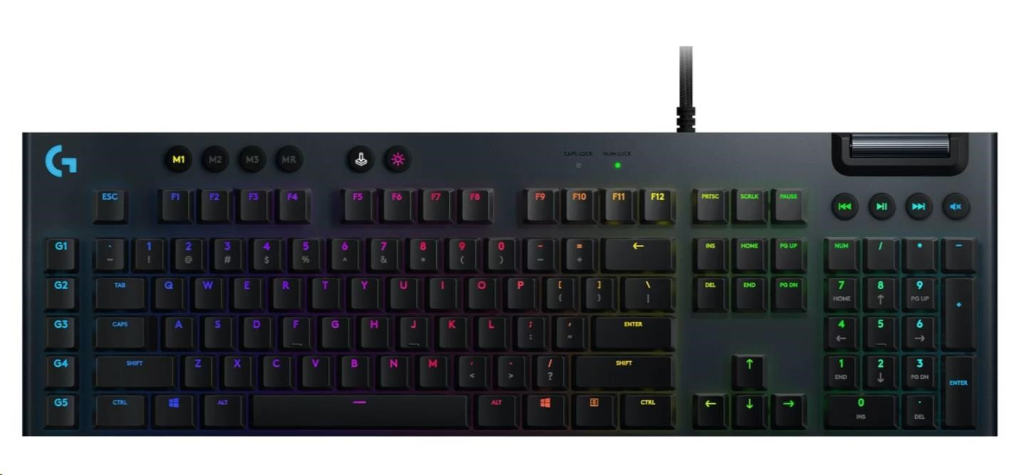 Elegantní a sofistikovaná klávesnice G815 přináší cíleně vysokou výkonnost a efektivitu se všemi funkcemi potřebnými pro dokonalé ovládání – například programovatelné klávesy G-key a integrované profily. Přeměňte klávesnici G815 na řídicí centrum svého PC.
