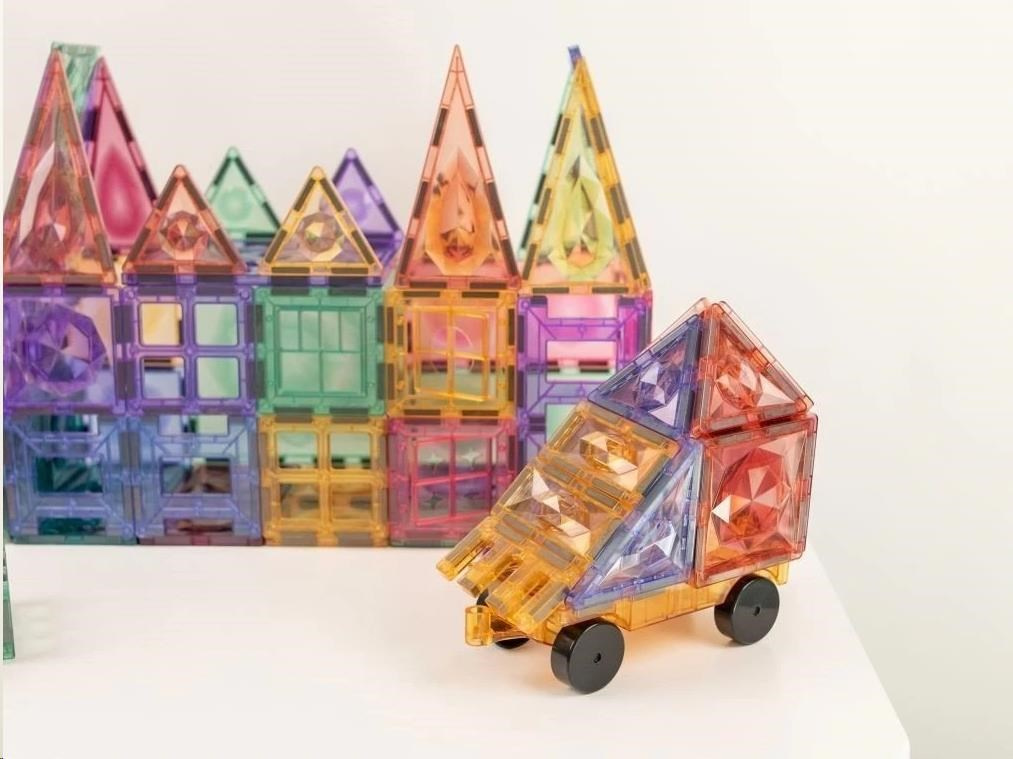 Kreativní magnetická stavebnice Elifix 108 ks v lehce pastelových barvách je navržená tak, aby podporovala hodiny neomezené kreativity, zábavy a učení prostřednictvím příjemného hraní. Postará se o rozvoj jemné a hrubé motoriky, zvýší schopnost soustředit se, představivost a trpělivost. Navíc podporuje prostorové vnímání, logiku a napomáhá pochopení fyzikálních zákonitostí. Magnetická sada nabízí množství různě velkých čtvercových a trojúhelníkových dílů, díly s okny i ploty a nechybí ani podvozek s kolečky pro stavbu dopravních prostředků.