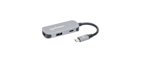 USB 3.2 Type-C Male na HDMI (4K@60Hz), porty USB-A (5 Gb/s) a USB-C PD (100 W), multiportový převodník s průchozím nabíjecím portem, hliník, vesmírně šedá barva