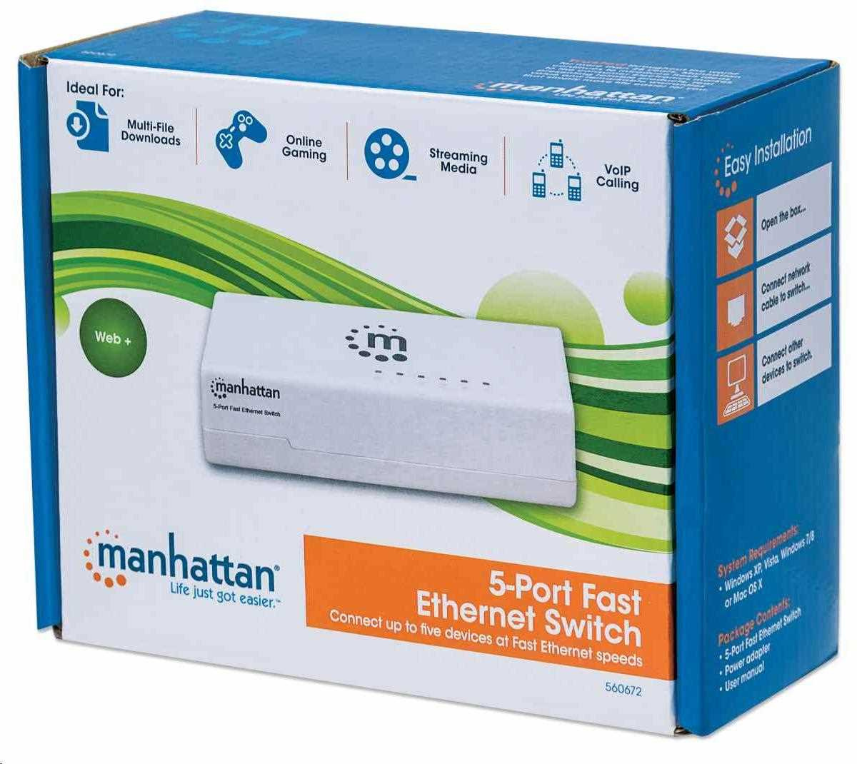 The Manhattan 5-Port Fast Ethernet Switch is perfect for the home environment and small-size business looking for a durable switch that is reliable and easy to install.
