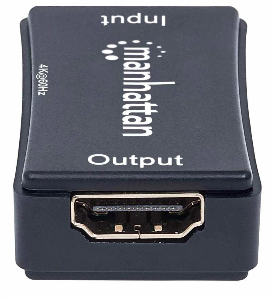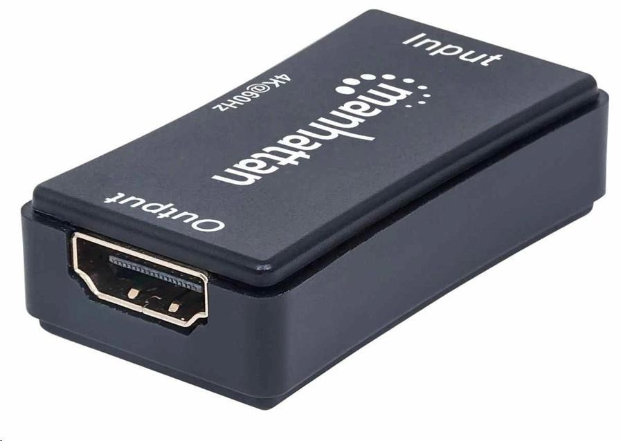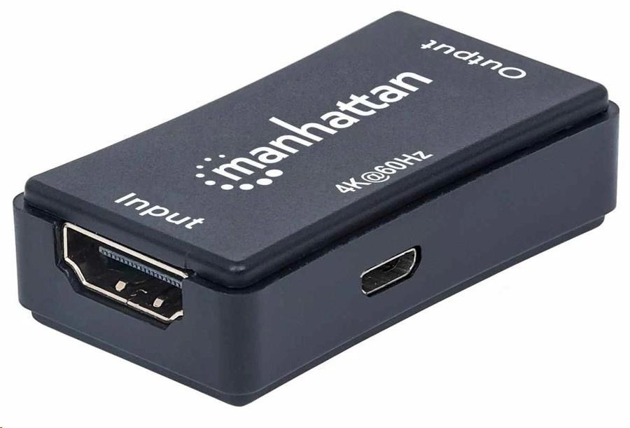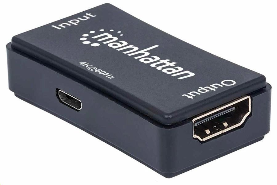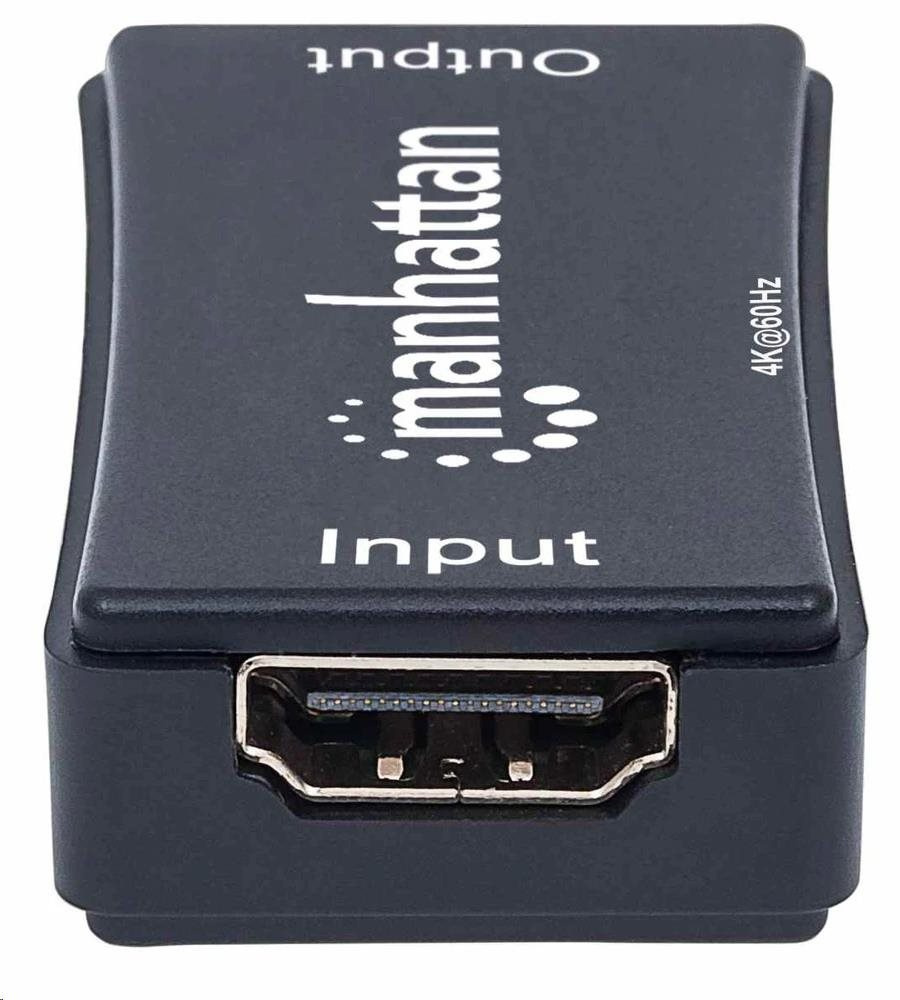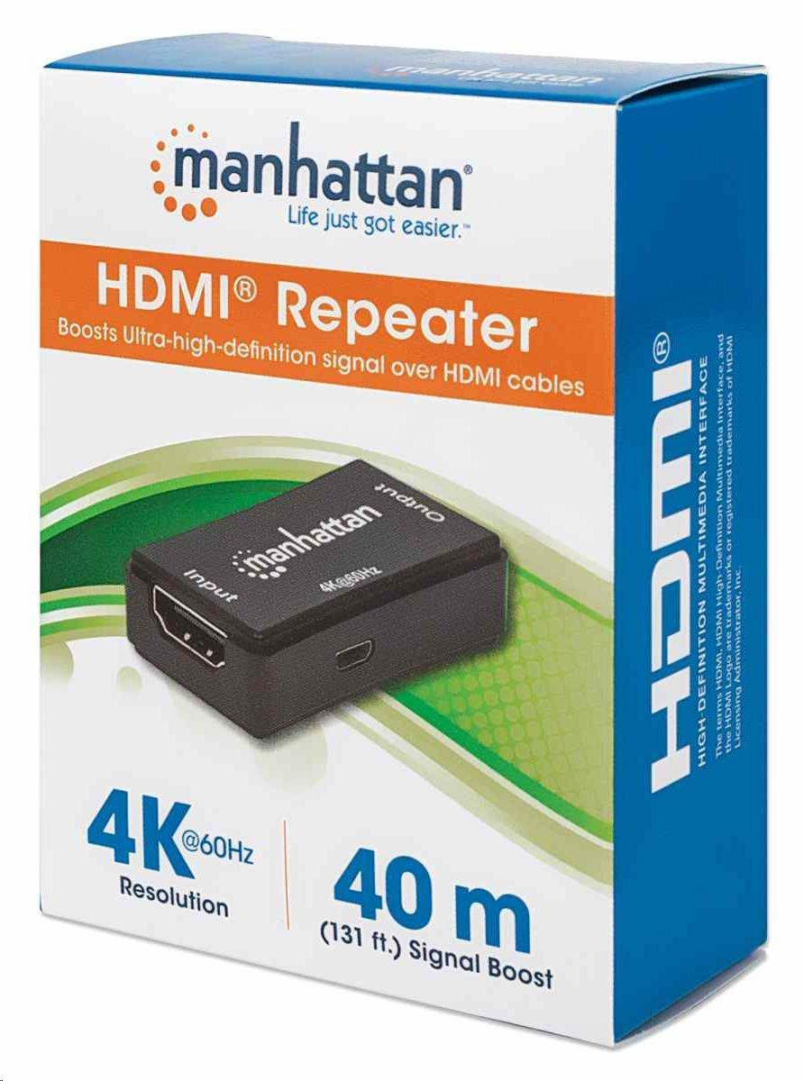The Manhattan 4K HDMI Repeater extends the range of an HDMI signal by decoding and regenerating it at 4K@60Hz resolution from virtually any HDMI source (PlayStation, Xbox, Blu-ray player, satellite receiver, digital recorder, etc.) using existing HDMI cables. Designed for plug-and-play installation, the Repeater boosts weak signals to reduce or eliminate picture noise, degradation or sparkles on an HD display or projector. An additional USB port is included to boost power to video sources that need to travel longer distances.