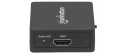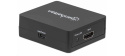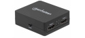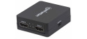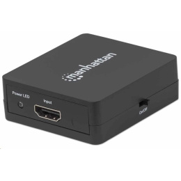 Easily distribute a single HDMI signal to multiple displays.The Manhattan 1080p 2-Port HDMI Splitter sends HDMI signals from a single Blu-ray player, satellite receiver, digital recorder, set-top box, game console or other HDMI source to two HDMI displays. Flexible Solution for Many A/V ApplicationsIdeal for trade shows, classrooms, video conferencing, presentations and retail applications, the Manhattan 1080p 2-Port HDMI Splitter features a built-in booster for added signal strength. It’s also a good choice for splitting and distributing a synchronous signal to multiple HDMI displays when source equipment is remotely stored in a secured room or cabinet. Users can cascade multiple units up to three levels and output HDMI video/audio to additional displays in widely distributed applications.Quality Construction and Easy InstallationFull compliance with HDMI, HDCP 1.0, 1.1 and 1.2 as well as DVI 1.0 ensures that the Manhattan 1080p 2-Port HDMI Splitter can provide long service and reliable performance. Quickly connect HDMI cables (not included) and the USB power cable, and this affordable HDMI solution is complete — no complicated settings or software or hardware configurations necessary.