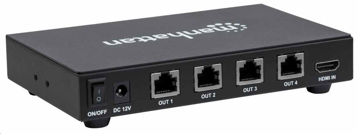 Splits One Source to Four Outputs; Extends Signal up to 50 m (165 ft.), Single Ethernet Cable per Receiver, Video Bandwidth Amplifier, Black