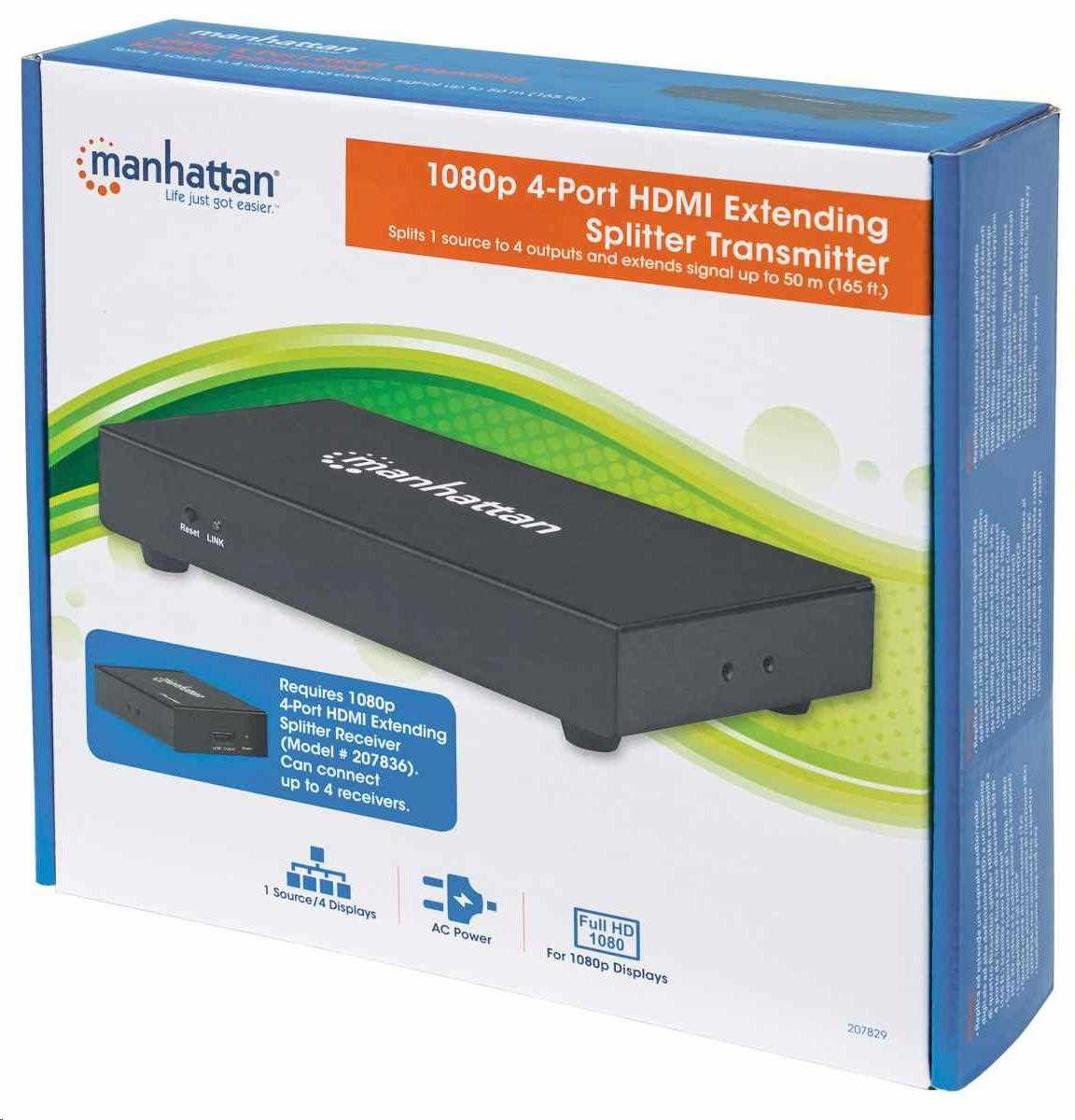| Package Contents | - 1080p 4-Port HDMI Extending Splitter Transmitter - Power adapter - Wallmounting brackets - Quick Instruction Guide |