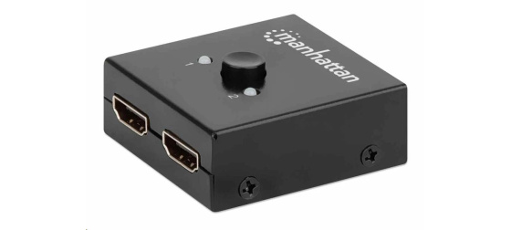 The Manhattan 4K Bi-Directional 2-Port HDMI Splitter Switch with built-in booster makes it possible to share a 4K HDMI signal from a single UHD source on one of two UHD displays or to connect two UHD sources and switch between them on one UHD display.