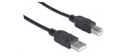 Manhattan Hi-Speed USB 2.0 Device Cables easily connect USB peripherals and accessories with desktop and notebook computers. Ideal for use with many USB external enclosures, hubs and other hot-swap, plug-and-play devices, Manhattan Hi-Speed USB 2.0 Device Cables support data transfer rates up to 480 Mbps on Windows and Mac systems for fast, reliable transmissions. Gold-plated contacts, shielding and fully molded boots with strain relief help provide dependable connections, maximum conductivity and minimal data loss with reduced EMI interference.