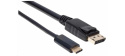 The Manhattan USB-C to DisplayPort Adapter Cable transmits a USB audio/video signal to a DisplayPort projector, flat-panel display, television or similar device. Built-in circuitry allows digital media enthusiasts to easily enjoy USB-based multimedia content on an Ultra High Definition (UHD) display or TV while maintaining simultaneous A/V reception at the source. Its UHD capability supports up to 3840x2160@60Hz and 4K to serve a wide range of resolutions in many devices and UHD applications including training, retail and trade show settings. Your source device must support DP Alt Mode. No additional setup is required. It effortlessly delivers digital content that is stored on a smartphone, tablet, Ultrabook or notebook computer to a display with DisplayPort input capabilities.