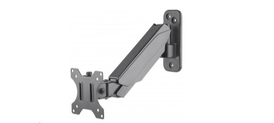 The Manhattan Universal Gas Spring Monitor Wall Mount offers a single-jointed gas-spring arm to securely hold one 17" to 32" TV or monitor. This mount's gas spring promotes easy movement of the monitor or TV to a more comfortable viewing angle with the lightest touch. Designed to be installed on the wall to give back much-needed desktop real estate, the Manhattan Universal Gas Spring Monitor Wall Mount provides more flexibility, reach, and overall enjoyment of whatever task is at hand.
