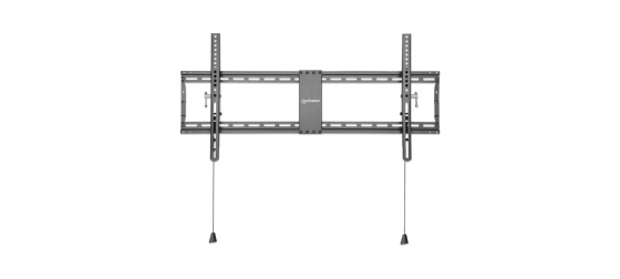 This tilting TV Wall Mount from Manhattan safely holds your TV and offers a toolless +3 to -12° tilt adjustment with the turn of a knob for optimized views. Constructed of 2 mm thick reinforced powder-coated steel, it fits flat and curved LCD, OLED or plasma TVs up to 100" and weighing up to 70 kg (154 lbs.) with VESA compliance up to 800x400. You're all set for a confident above-the-floor installation with an included bubble level that helps get the mount perfectly horizontal on the wall, and intuitive snap-in spring locks with release cords let you easily and securely put the TV in place. It's ideal for residential, office, hospitality, classroom, conference room, digital signage and other commercial applications. An anti-theft opening allows you to attach a padlock to prevent your valuable display from being removed and stolen. p>