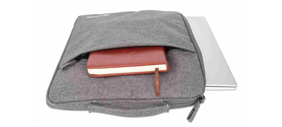 The Manhattan Seattle Notebook Sleeve 15.6" is the stylish travel companion to your Ultrabook™, laptop or Macbook®. Its extra-soft interior and water-resistant, durable exterior offer premium protection for your device against weather, spills, bumps and scratches. The additional zippered front pocket has plenty of space for small items such as chargers or headphones. A convenient handle makes device transportation easier and safer. Its compact design can be easily stowed in seat pockets or overhead bins.