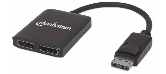 The Manhattan DisplayPort to Dual DisplayPort - MST Hub streams a 4K DisplayPort (DP) signal from a single UHD source to up to two UHD displays.