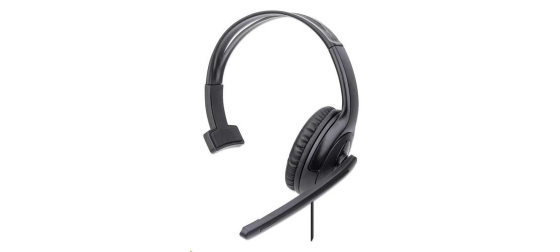 Single-sided Over-ear Design, Wired, USB-A Plug, In-line Volume Control, Adjustable Microphone, Black