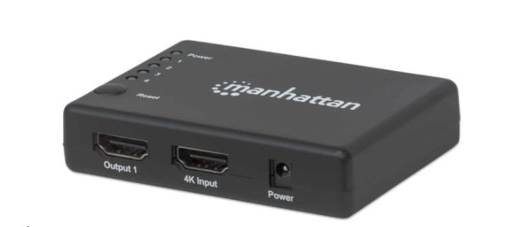 The Manhattan 4K 4-Port HDMI Splitter with built-in booster streams a 4K HDMI signal from a single UHD source to up to four UHD displays.