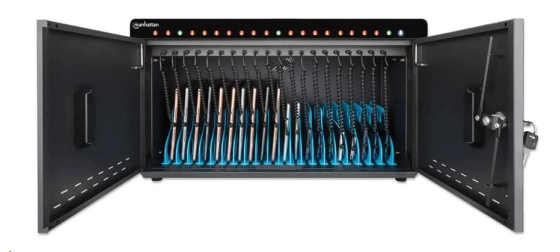 Visitors, guests and employees bring their mobile devices to all sorts of venues. Give your people a way to charge the drained batteries of their smartphones or tablets with the 20-Port Desktop Charging Cabinet - 360 W from Manhattan. It's the ideal charging solution for restaurants, schools, gyms, doctor’s offices, universities, hotels, car rental agencies and more.