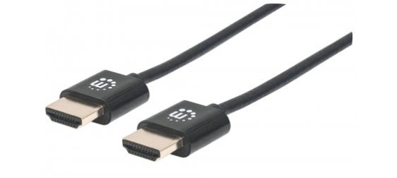 HDMI has become the standard digital connection, delivering the highest-quality audio and video signal over a single cable. With an ultra-thin, tangle-resistant design, gold-plated contacts and a sturdy yet slim PVC jacket, Manhattan Ultra-thin High Speed HDMI Cables are carefully constructed to meet the evolving needs of the ultra high-definition marketplace. Manhattan High Speed HDMI Cables provide the highest resolution possible at 4K x 2K, an audio return channel and a bandwidth of 18 Gbps at 600 MHz. These high-quality cables provide ultra high-definition video and multichannel, digital audio with increased performance characteristics and greater accuracy. Expanded features include Internet connectivity for home entertainment devices using a single HDMI connection. Plus, this cable's unique design makes it easy to handle and shape without worrying about snags and tangles.