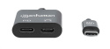 Want to listen to your USB-C headset and charging the device it connects to simultaneously? Add one USB-C audio port and get plenty of power for all your attached devices with the Manhattan USB-C Audio Adapter. Simply connect it to your computer's USB-C port, connect your computer's charging cable to the Power Delivery port on the adapter, and plug in your headphones. The adapter's Power Delivery technology charges your computer and all the devices it connects to so you can listen to music, favorite podcast or media program while you get work done. The jack also supports audio input if your headphone cable has a built-in mic so you can be heard and understood better in your online communications. Improve your productivity and get the audio connection you need with this USB-C audio adapter.