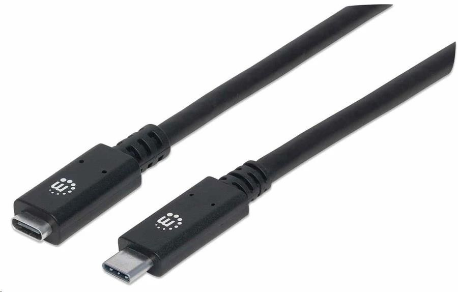 The Manhattan SuperSpeed+ USB-C Extension Cable achieves better access to a Type-C port or connection. This extension cable can be used to extend the distance of a Type-C cable, create easier access to a Type-C port, or prevent port wear and tear. Ideal for use with any USB Type-C plug-and-play device, the Manhattan SuperSpeed+ USB-C Extension Cable supports fast, reliable data transfer rates up to 10 Gbps on Windows and Mac systems and current up to 5 amps (100 W). Nickel-plated contacts, shielding and fully molded boots with strain relief provide dependable connections, maximum conductivity and minimal data loss with reduced EMI interference.