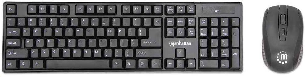 The Manhattan Wireless Keyboard and Optical Mouse Set combine excellent value with comfort and durability. The Wireless Keyboard offers a robust key structure, highly responsive keys, an easy-access command panel, various multimedia functions and a full-sized numeric keypad that provide the immediate familiarity of the modern keyboard. When used in tandem with the included Wireless Optical Mouse, with its adjustable 800/1200/1600 dpi, standard buttons for left and right clicks, and an easy-access a scroll wheel, you are sure to notice an increase in how much you can get done.