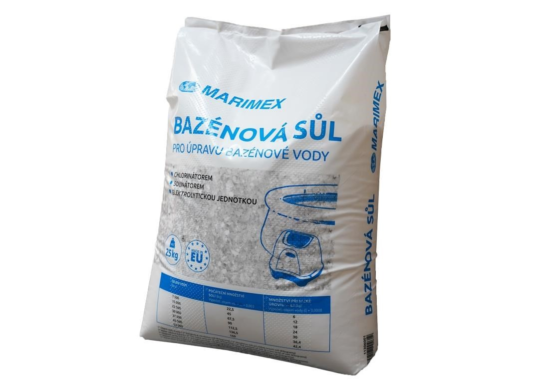 Marimex bazénová sůl je určena pro bazény vybavené solinizační (chlorinizační) jednotkou. Díky vysoké čistotě a jemnému mletí se rychle rozpouští a je snadná na použití.