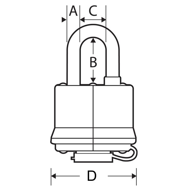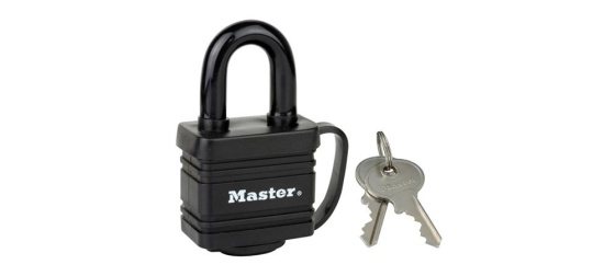 Tělo z vrstvené oceli s potahem z termoplastu odolné proti povětrnostním vlivům a poškození. Třmen z kalené oceli o průměru 9 mm odolný proti přeřezání. Vložka se 4 stavítky. Dvojitá západka odolná proti vypáčení. Bezpečnostní třída Master Lock™ 5. Krytka klíčové dírky. 2ks klíčů v balení