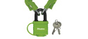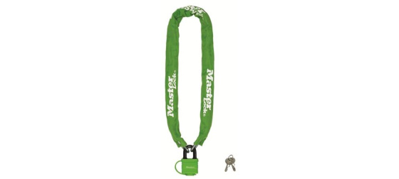 Zpevněný ocelový řetěz s ocelovým visacím zámkem je 90 cm dlouhý a obsahuje ocelové spojky o průměru 6 mm, které odolávají řezání. Nylonový kryt řetězu zabraňuje poškrábání. Visací ocelový zámek o průměru 40 mm je odolný proti povětrnostním vlivům. Plastový kryt na visacím zámku zabraňuje poškrábání. Třmen s průměrem 9 mm je vyroben z oceli pro odolnost proti řezání. Obsahuje 4-kolíkový válec zabraňující vyhmatání a dvojitou západku odolnou proti vypáčení.