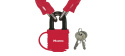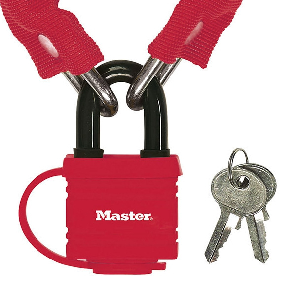 Zpevněný ocelový řetěz s ocelovým visacím zámkem je 90 cm dlouhý a obsahuje ocelové spojky o průměru 6 mm, které odolávají řezání. Nylonový kryt řetězu zabraňuje poškrábání. Visací ocelový zámek o průměru 40 mm je odolný proti povětrnostním vlivům. Plastový kryt na visacím zámku zabraňuje poškrábání. Třmen s průměrem 9 mm je vyroben z oceli pro odolnost proti řezání. Obsahuje 4-kolíkový válec zabraňující vyhmatání a dvojitou západku odolnou proti vypáčení.