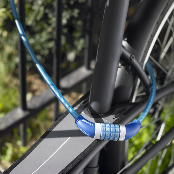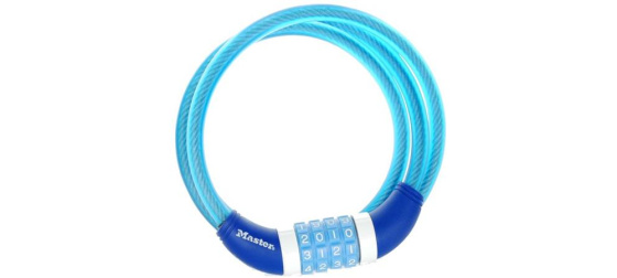 Ocelové lanko o průměru 10 mm a délce 1 200 mm má vinylový potah, který zabraňuje poškrábání laku. Obsahuje integrovaný nastavitelný 4-ciferný kombinační zámek (10 000 možností). Bezpečnostní třída Master Lock™ 5. Materiál: ocel Barva: modrá