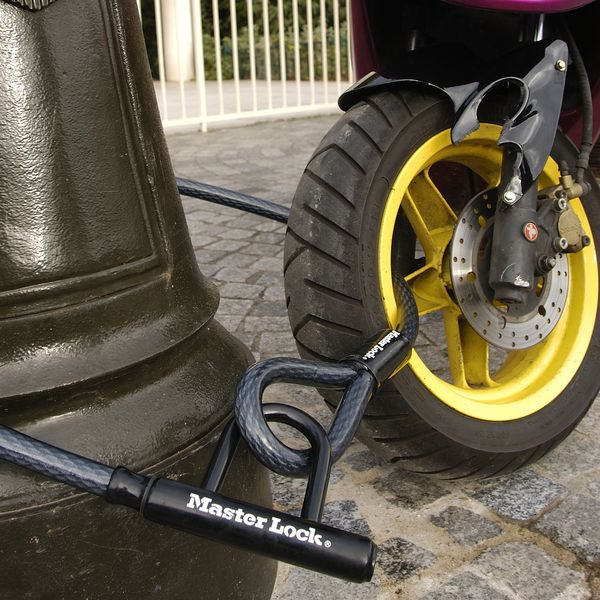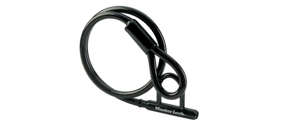 Ocelové lanko dlouhé 1 500 mm má průměr 20 mm. Součástí lanka je integrované pevné ocelové oko ve tvaru U. Vinylový potah zabraňuje poškrábání laku. Bezpečnostní třída Master Lock™ 16. Materiál (lanko): ocel Barva: černá