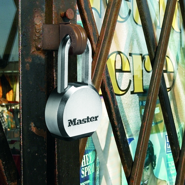 - Visací zámek o šířce 54 mm s tělem z pochromovaného zinkového odlitku vysoce odolným proti korozi.