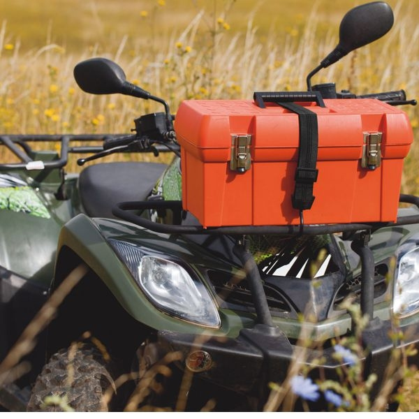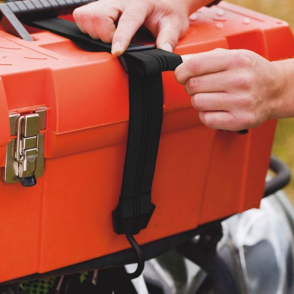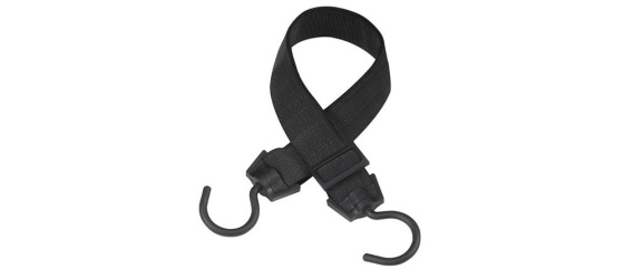 Speciální upínací popruh o šířce 40 mm zakončený háčky. Nastavitelná délka od 600~1 200 mm. Otáčivé háčky pro snadnější upevnění nákladu. Maximální nosnost 50 kg. Plastem kryté háčky zabraňující poškození nákladu. Barva: černá Cena za kus