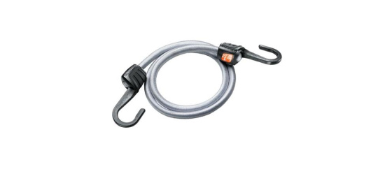Speciální upínací guma o délce 800 mm a průměru 9,5 mm zakončená háčky. Ploché ocelové háčky pro vyšší pevnost v tahu. Maximální nosnost 85 kg. Plastem kryté háčky zabraňující poškození nákladu. Barva: šedá Cena za kus
