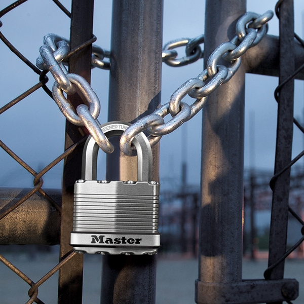 - Visací zámek o šířce 50 mm s tělem z vrstvené oceli zpevněný titanem pro vyšší odolnost a spolehlivost.