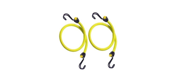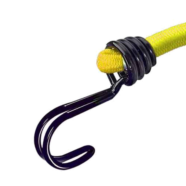 Set 2ks upínacích gum zakončených háčky. Délka gumy 1000 mm a O8 mm. Maximální nosnost 40 kg. Háčky z dvojitého drátu pro větší pevnost v tahu. Zaoblené konce háčků zabraňující poškrábání. Barva: žlutá Cena za set