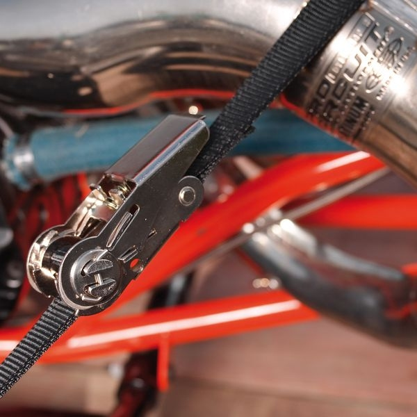 Upínací popruh s ráčnou. Délka 5 000 mm a šířka 25 mm. Maximální nosnost 400 kg. Barva: černá Cena za kus