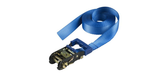 Upínací popruh s ráčnou. Délka 6 000 mm a šířka 35 mm. PVC rukojeť pro vynikající uchopení a pohodlné použití. Maximální nosnost 800 kg. Barva: modrá Cena za kus